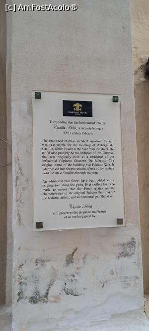 Așa am ajuns la Hotel Castille care, deși nu avea decât nota 8,00, mi-a suscitat imediat interesul grație poziției ultracentrale, dar mai ales prin specificul clădirii care era un vechi palat maltez (de secol XVI) cu istorie serioasă pe umeri, situat lângă impozantul Auberge de Castille, sediul de astăzi al Guvernului Maltez și al Primului-Ministru.