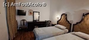 Am primt camera nr. 28, situată la etajul al doilea, spre care am urcat mai mereu cu liftul, dar și pe scări de câteva ori, ceea ce ne-a dat posibilitatea să admirăm palierele și zidurile groase, originale ale clădirii, cât și cum erau decorate spațile comune.