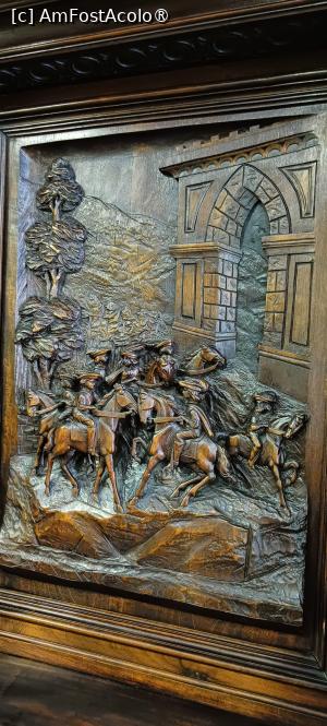 * Garnitura de mobilier aflată pe un hol intermediar al muzeului, sufrageria în stilul Renașterii germane, datând de la sfârșitul veacului al XIX-lea – început de secol al XX-lea. Superbe piesele din lemn sculptat, figurile sunt expresive, formele complicate, scenele bine realizate.