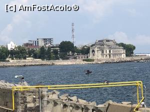 Scarile te conduc deasupra muzeului cu acoperis plan, pe o platforma de unde ai o perspectiva foarte frumoasa asupra unei parti a portului, cu digurile si danele sale si infrasturctura rutiera, navala si feroviara dar si asupra Cazinoului si a falezei si a cartierul vechi al Constantei dinspre port. Este terasa de care va povestesc mai multe indata.