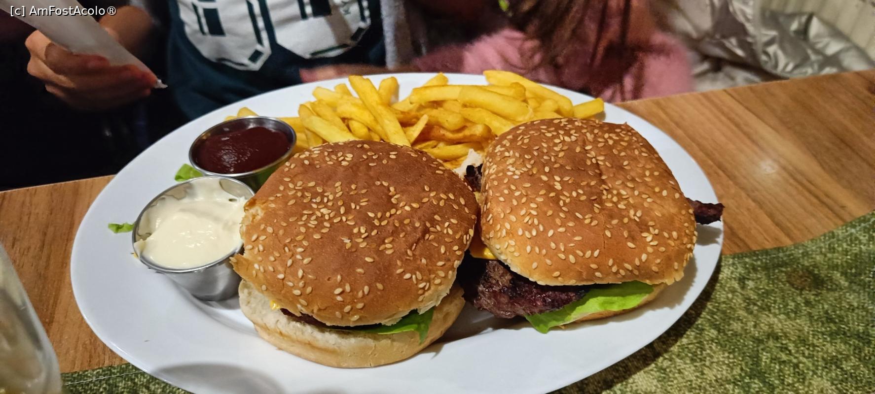Gust și aspect. După vreo 20 de minute au fost aduse felurile principale, nimic ieșit din comun. Porțiile generoase (chiar erau doi hamburgeri la porție), gust normal pentru asemenea preparate.