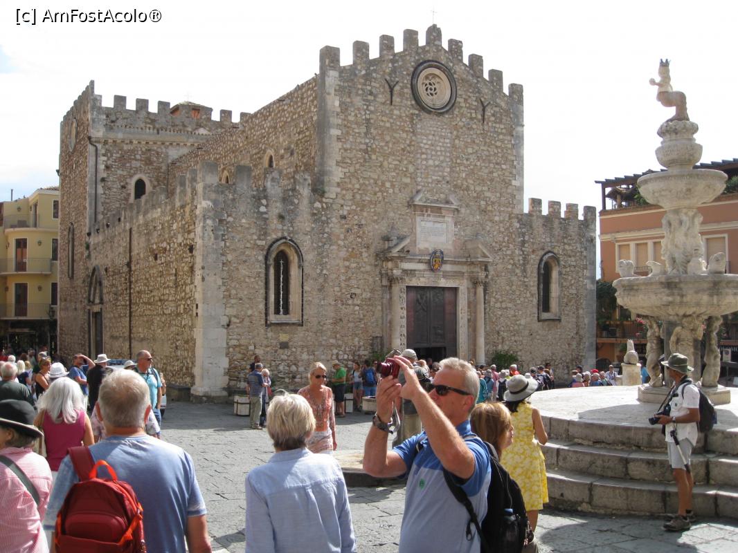 [P40] Piața Catedralei, chiar în fața Domului San Nicolò se află o fântână pitorească. Pe piedestalul cu trei niveluri se află o figură amuzantă – centaurul încoronat. Este un simbol al Taorminei.