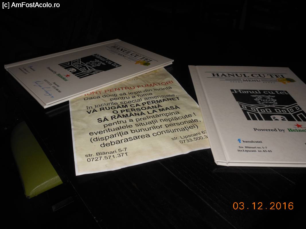 [P18] Hanul cu Tei - Meniuri și indicația ca masa să nu fie părăsită în totalitate în cazul ieșirii la fumat.