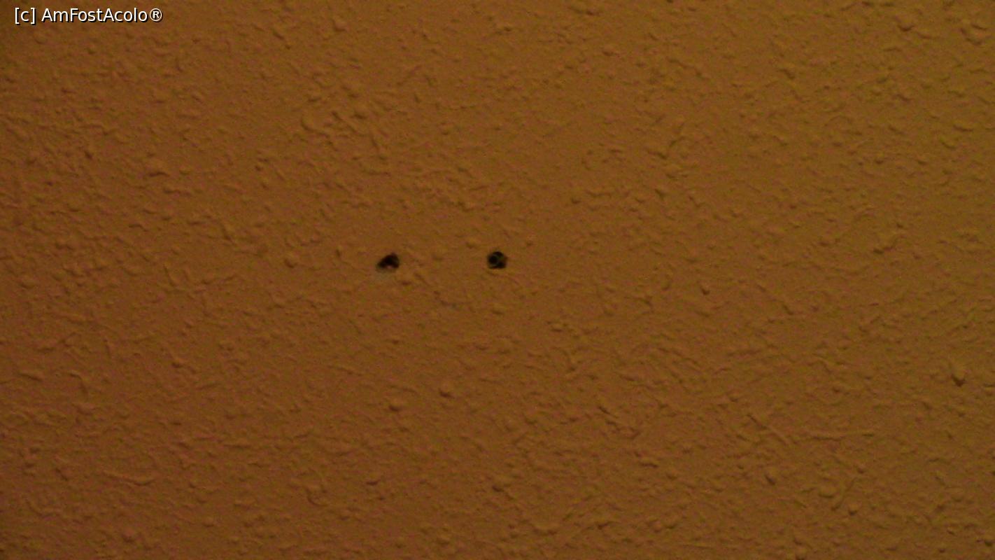[P07] Doua gauri in perete deasupra paturilor. Aici a fost cândva un aparat de iluminat.