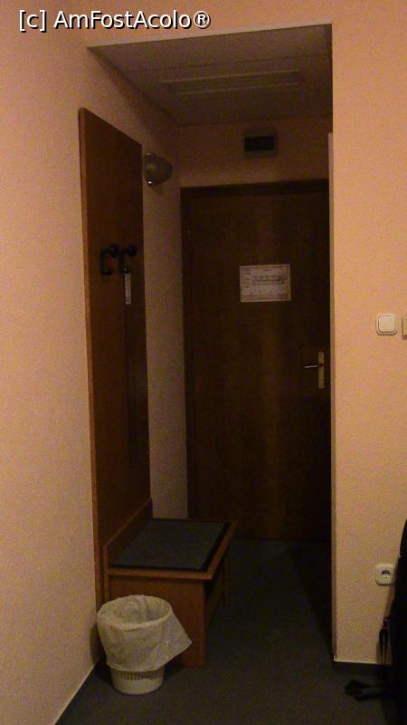 [P09] Ușa de la intrare, la stânga un cuier. Coșul l-am găsit aici.