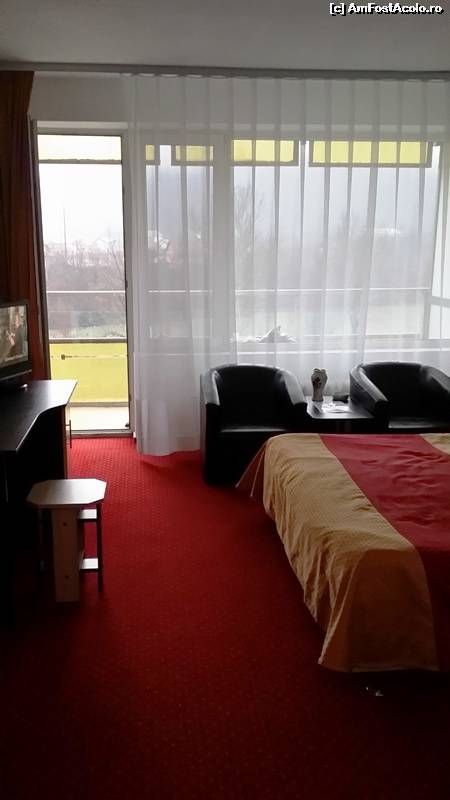 [P04] Hotel Căciulata - colț de cameră, cu ieșirea în balcon și cele două fotolii, cu măsuța