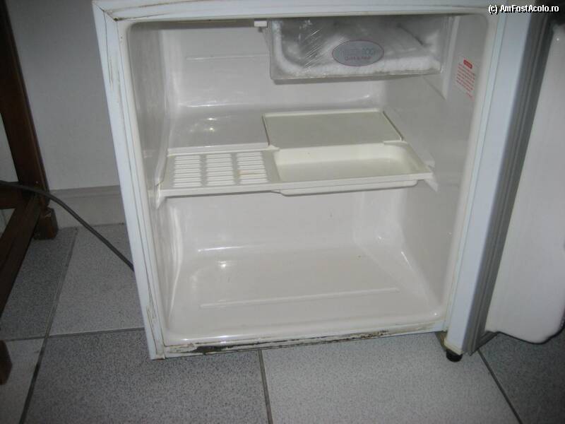 [P04] frigider minuscul ,ruginit si plin de gheata.aveam pastile pt lada frigorifica de luat pe plaja care nu inghetau in congelator de seara pana dimineata