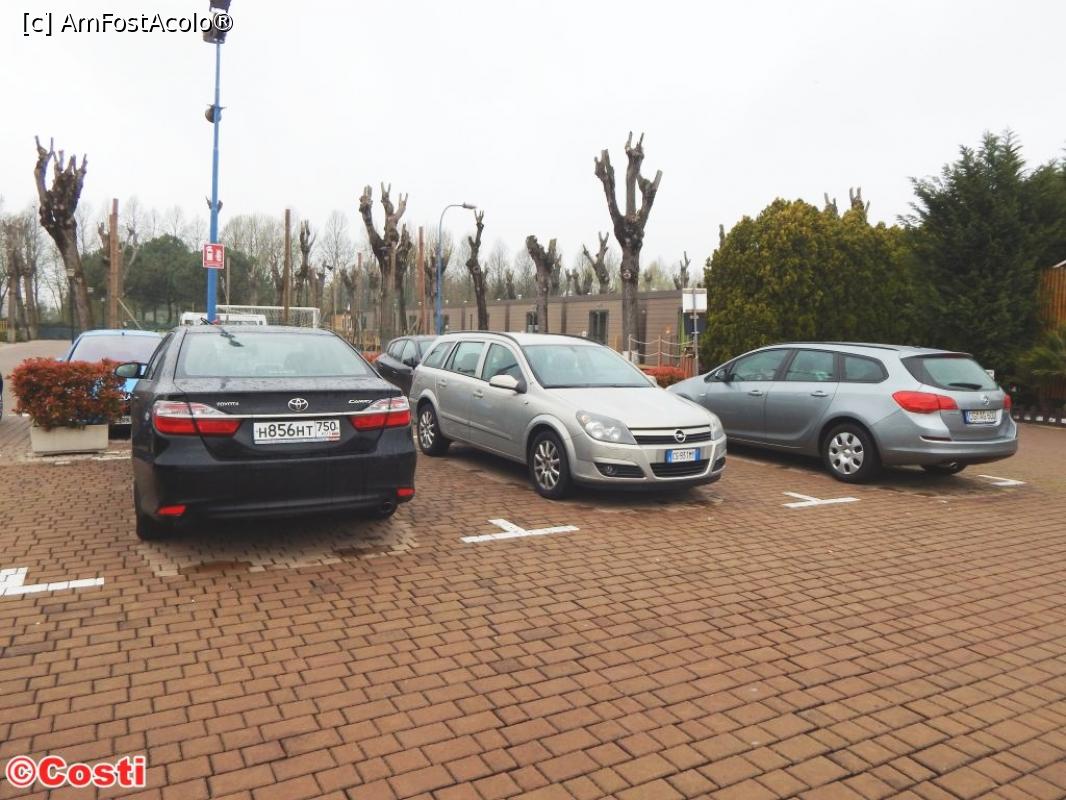 [P08] Parcarea de la Camping Village Jolly. Mașinuța roșie din stânga, era Fiatul Panda închiriat de noi.