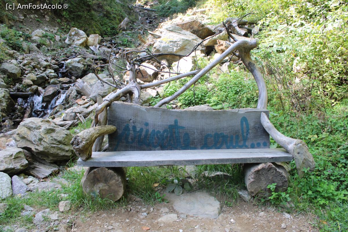[P23] Poteca turistică spre Cascada Scoruș, Mălaia, Loc de odihnă cu mesaje pentru turiști... mi-a plăcut...