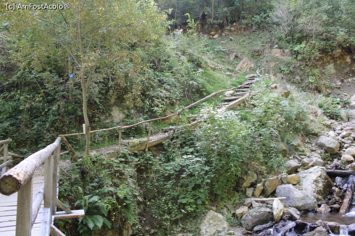 [P19] Poteca turistică spre Cascada Scoruș, Mălaia, Vâlcea, Scările de lemn pozate de pe podeț...