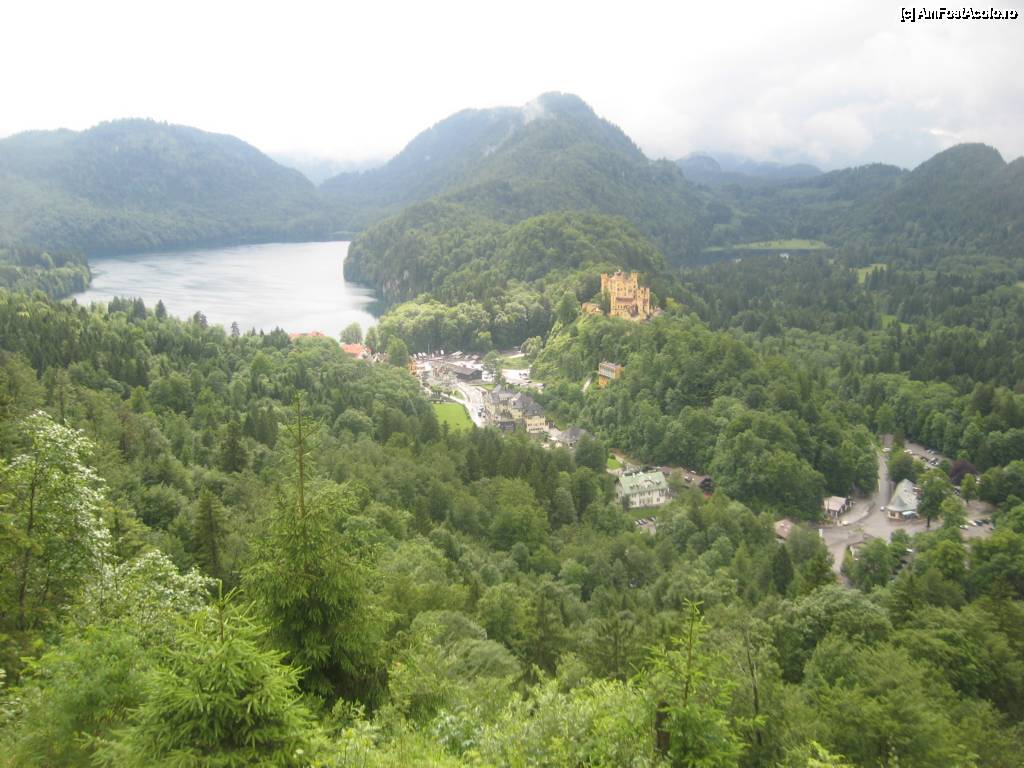 [P10] Vedere din balconul castelului, un lac de acumulare, satul Schwangau si castelul Hohenschwangau