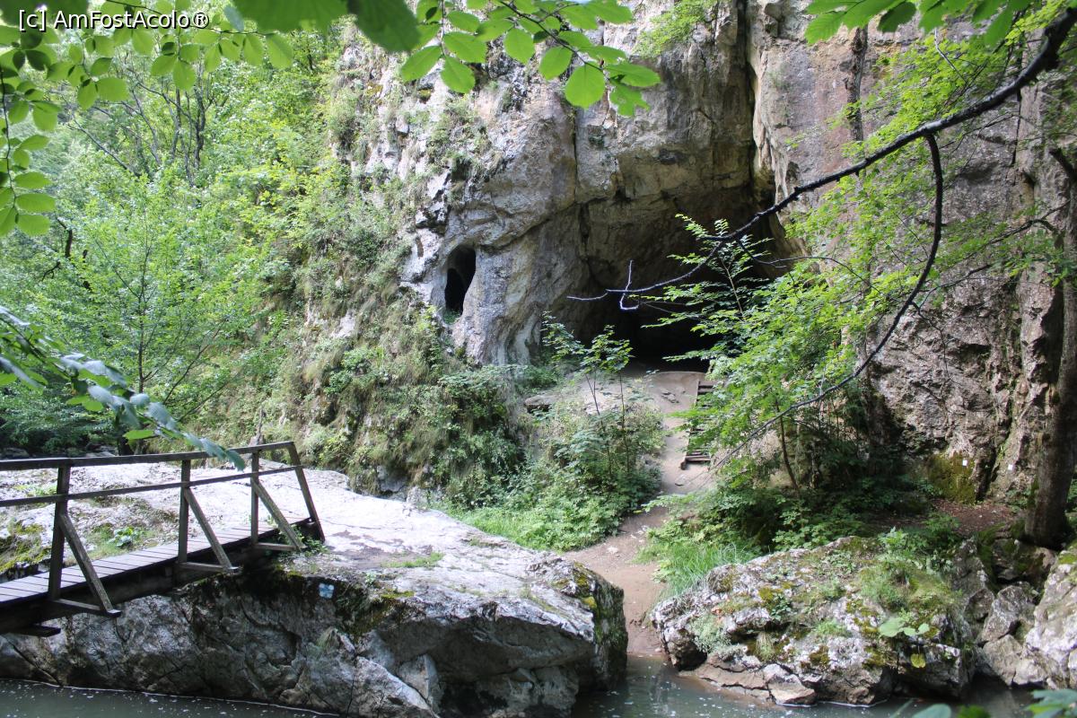 [P48] Cheile Vârghișului, Peștera Șura Cailor văzută de pe malul opus din drumul ce duce mai departe la altă punte...