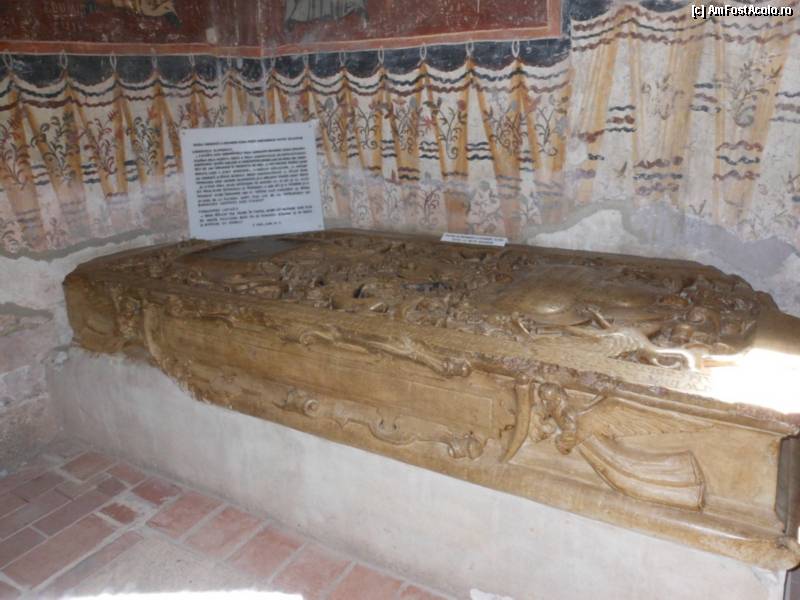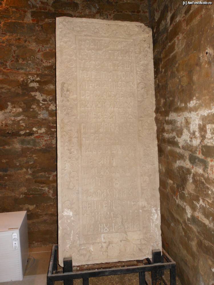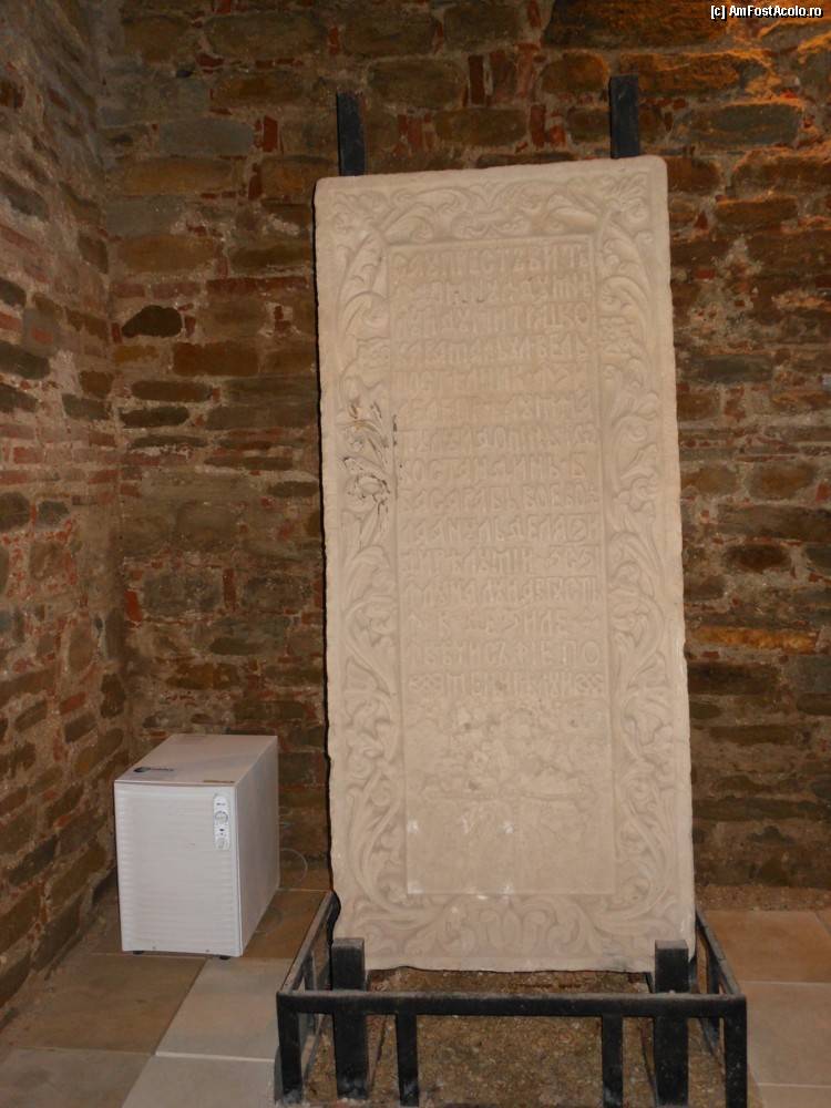 [P30] Targoviste, Curtea Domneasca - Biserica Mare, lespedea funerara de pe mormantul doamnei Elina - sotia domnitorului Matei Basarab.