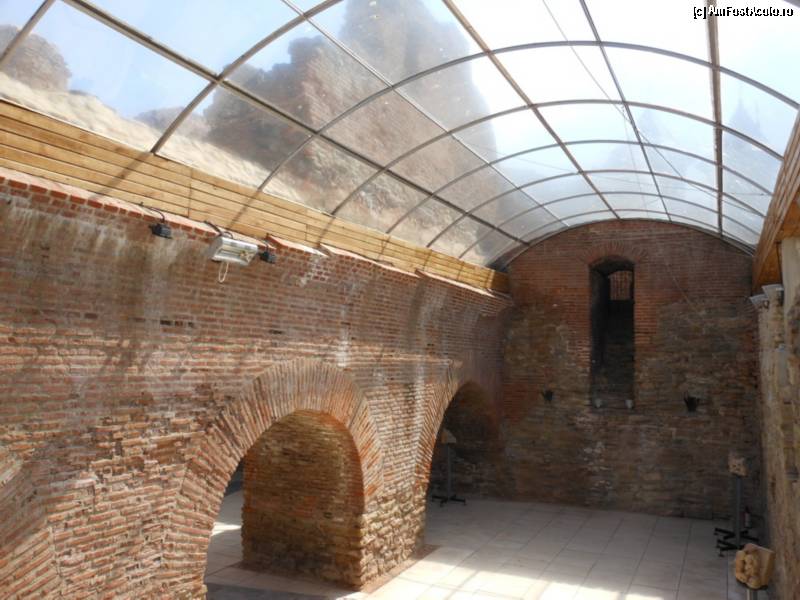 [P16] Targoviste, Curtea Domneasca - Galerie din subsol protejata cu acoperis semicircular din plastic.