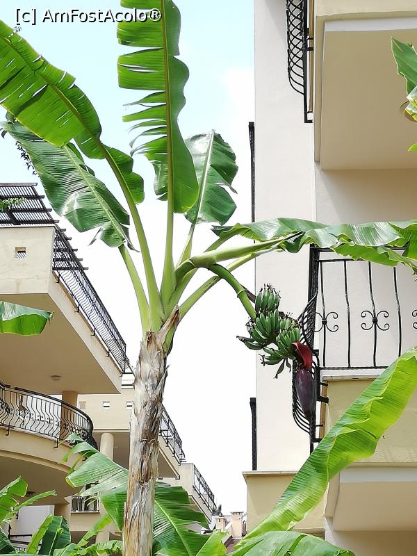 [P02] In prim plan cateva banane aproape de maturitate iar in fundal se vad mini blocurile din resort