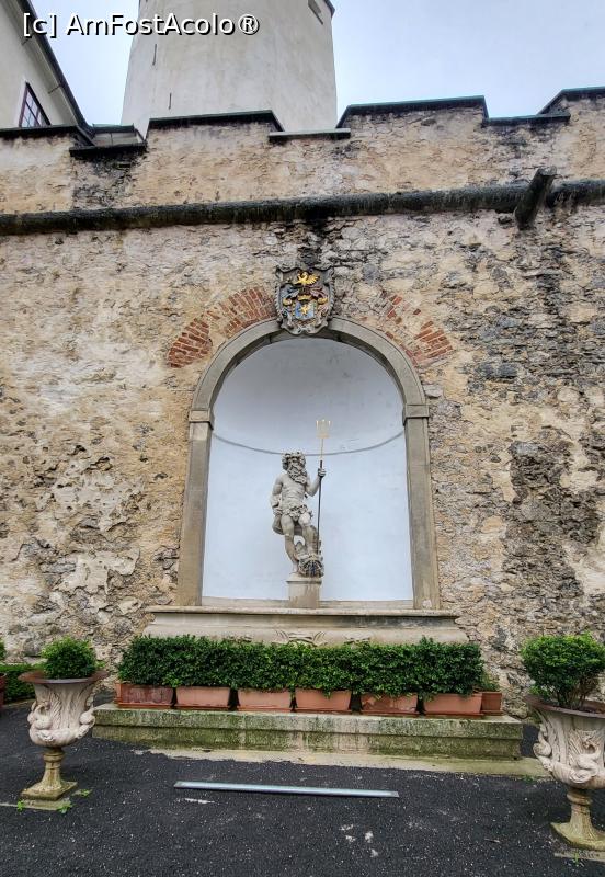 [P06] Fantana care il reprezinta pe Neptun. Deasupra acesteia este blazonul, stema familiei Esterházy.