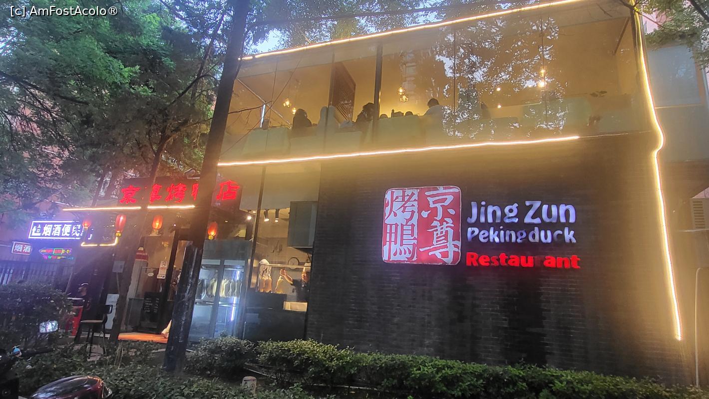 [P33] Am incheiat ultima seara in Beijing, servind Suprem Beijing duck la restaurantul Jingzun, aflat peste drum de hotelul nostru. Rata Pekin este un fel de mancare traditionala chinezeasca celebra, constand in rata preparata in piele crocanta si carne frageda. Desi acest preparat provine din Beijing, originile sale dateaza din Dinastia Yuan.