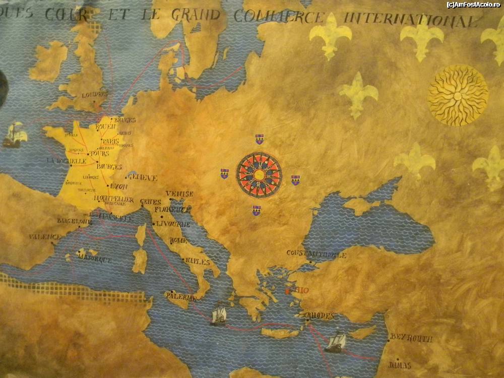 [P15] Bourges - Palatul Jacques Cœur-harta ce prezintă itinerariul călătoriilor pe Marea Mediterană până în Orient
