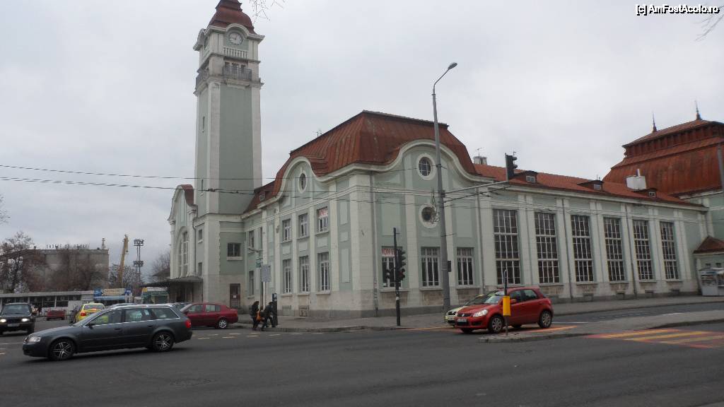 [P29] cladirea garii din Burgas, monument istoric, pe fundal se vad macaralele portului