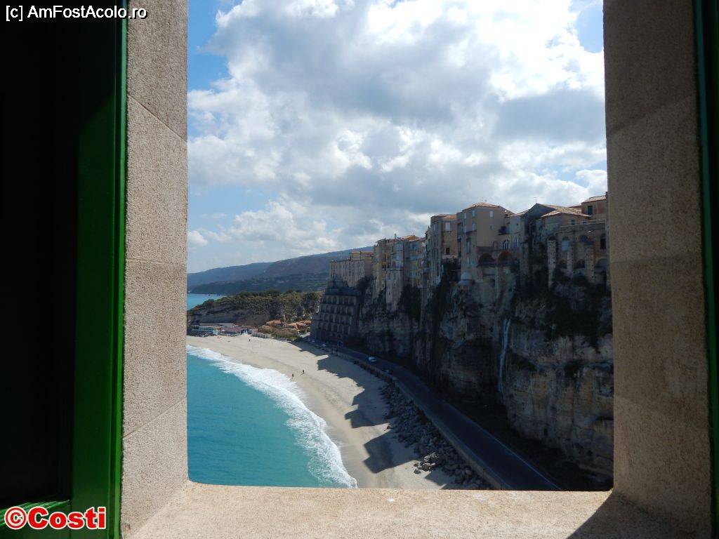 [P09] O imagine spre plajă, de la o fereastră de la Santuario di Santa Maria dell'Isola, din Tropea