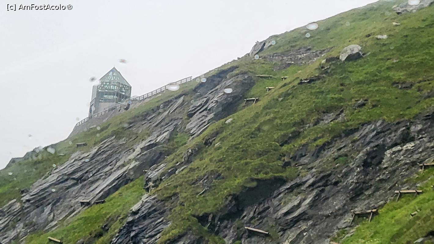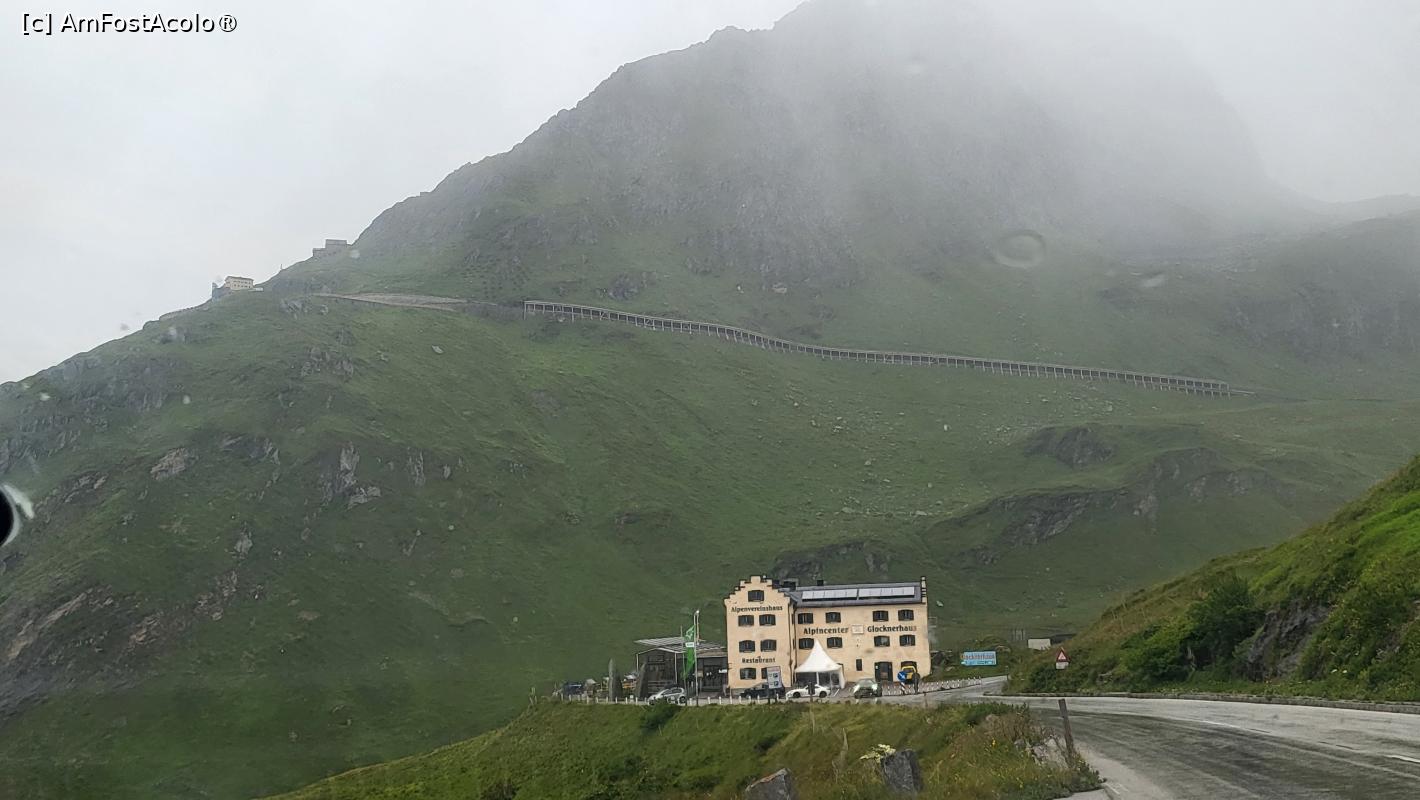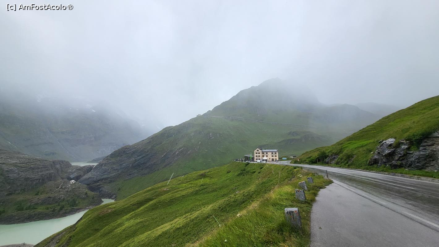 [P57] Aici exista o parcare mare cu plata, acoperita, supraterana, unde am parcat si noi si am iesit sa vedem peisajul, insa ceata nu ne-a lasat sa descoperim mai nimic din ghetarul Pasterze sau varful Grossglockner. In amintirea ascensiunii pe care au facut-o imparatul Franz Josef si imparateasa Sisi, pana la ghetar, pe locul unde ei au poposit s-a construit un centru turistic, ce poarta numele imparatului.