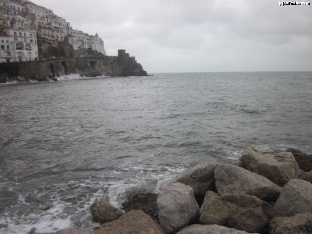 [P41] amalfi în aşteptarea ploii. în dreapta fotografiei se poate observa staţia de autobuze.