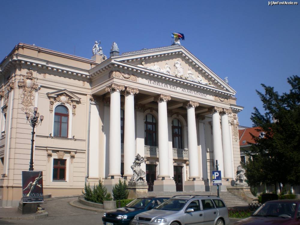 [P27] Teatrul de Stat Oradea, se vad in fata si cele 2 statui - Divina si Comedia
