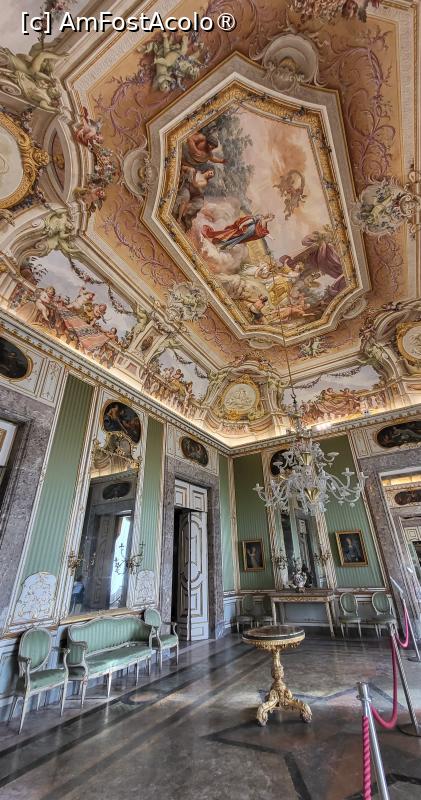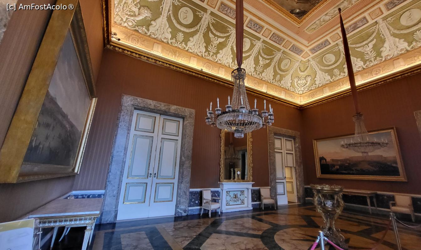 [P05] Pe console sunt doua vase din portelan francez, cu decoratiuni bogate reprezentand fructe si legume viu colorate. Pe pereti sunt portrete ale nepotilor lui Ferdinand al IV-lea. Din aceasta sala se intra in Oratoriu, o capela privata a lui Ferdinand al II-lea.