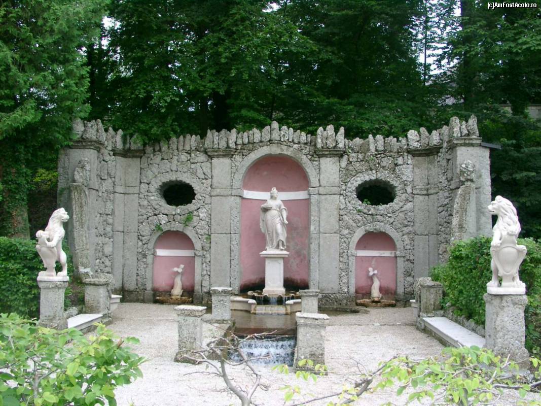 [P14] Hellbrunn este renumit pentru fantanile care te pacalesc (“wasserspiele” sau “trick gardens”). Fantanile au fost concepute pentru distractia Printului. Printul era renumit pentru faptul ca dorea intotdeauna sa faca glume si farse pe seama invitatilor sai.