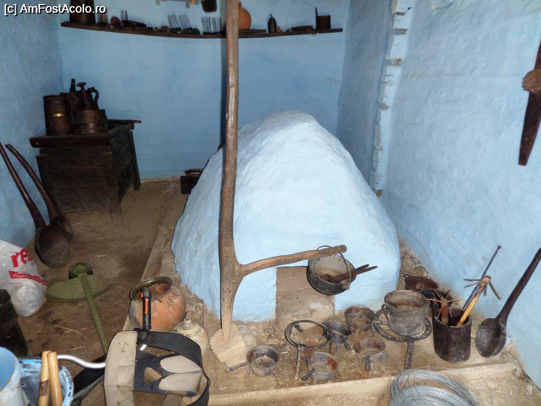 [P12] Cuptorul de pâine şi alte obiecte tradiţionale expuse în casa ţărănească.