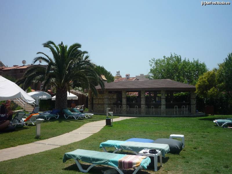 [P32] HE - gradina, pe fundal se vede locul unde se serveaua pizzele cu carne sau branza impreuna cu ayranul.