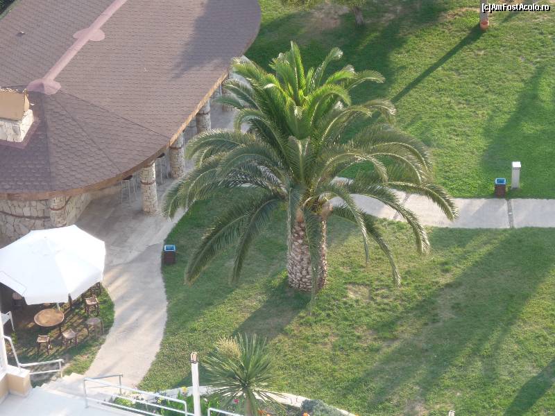 [P35] HE - gradina si plaja, vazute de pe hotel, in dreapta se vede amfiteatrul si barul de la gradina.