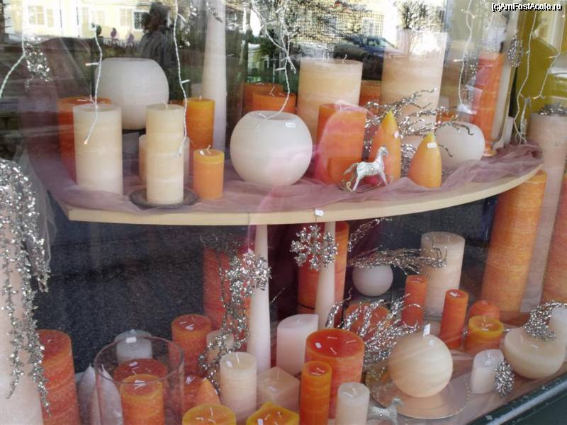[P05] Una dintre vitrinele cu lumanari. Fiecare vitrina era aranjata in alta culoare (rosu, verde, portocaliu, galben, albastru, alb).