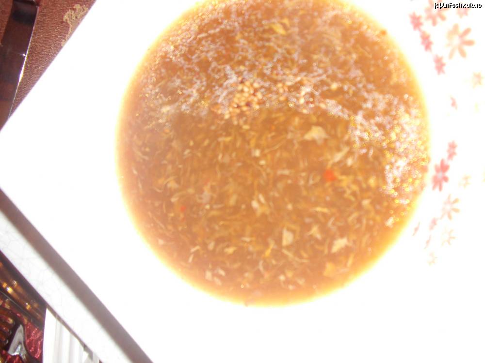 [P28] Ciorba chinezeasca la restaurantul a-la-carte chinezesc. Ni s-a spus ca in principiu nu are nici miau-miau, nici ham-ham si nici chitz-chitz. Poate doar cativa viermisori luati de la niste pescari. Trecusera 15 minute de cand asteptam sache-ul comandat...