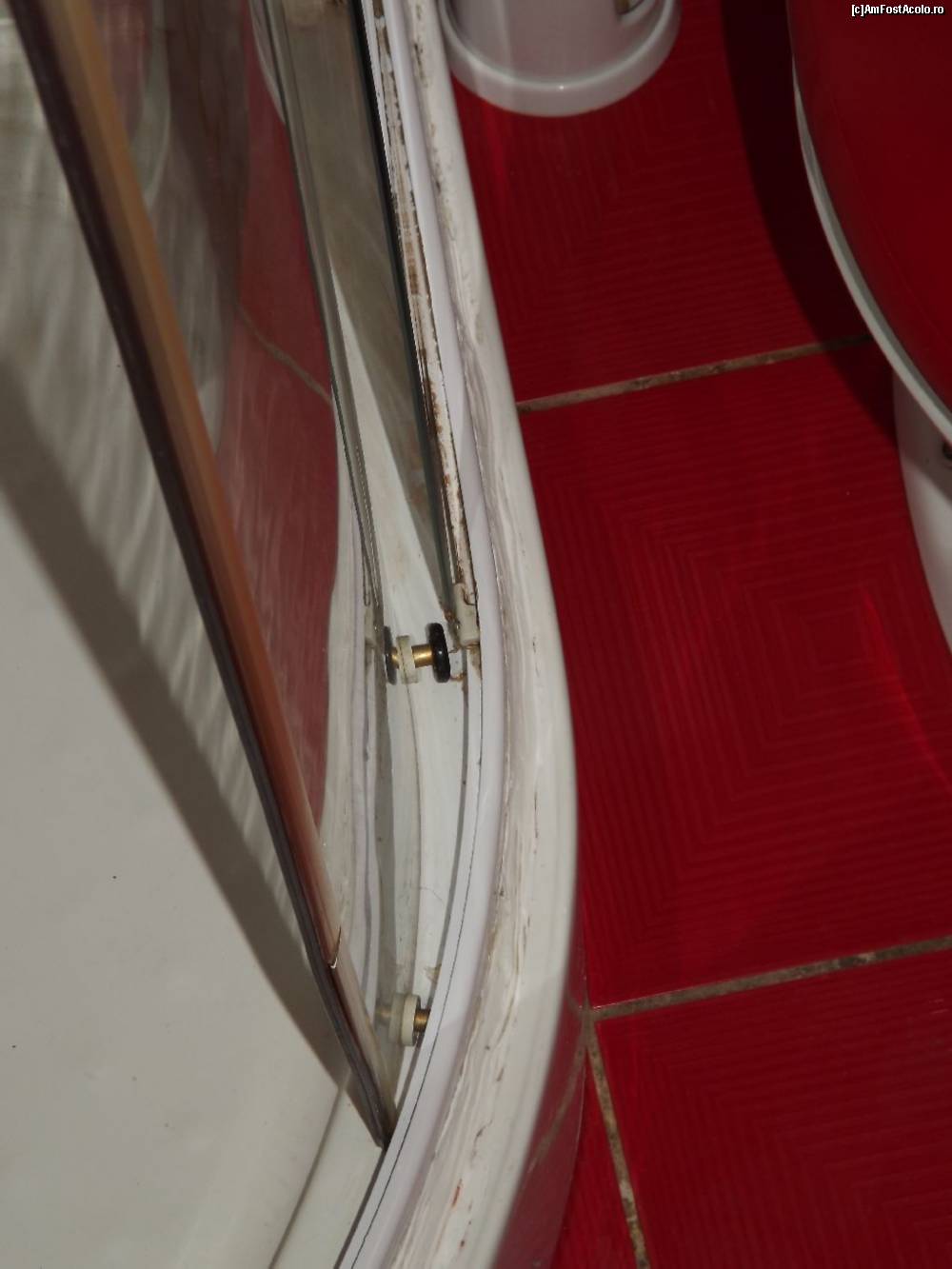 [P20] Heaven Hotel (Hunedoara) - a doua cameră primită; baia (detaliu ușă cabină duș, după ce am reușit cât de cât s-o pun „pe roți”).