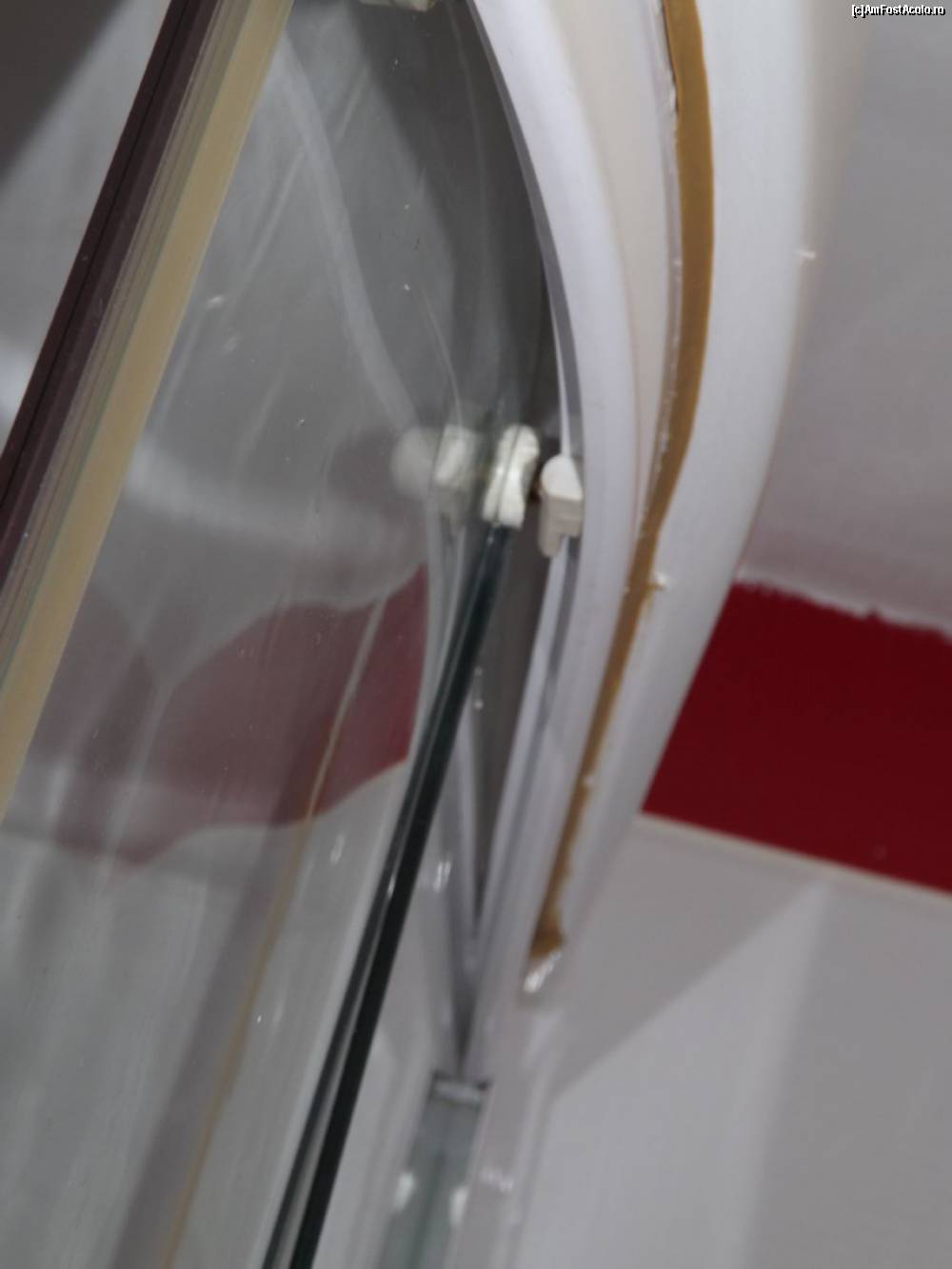 [P21] Heaven Hotel (Hunedoara) - a doua cameră primită; baia (detaliu ușă cabină duș, după ce am reușit cât de cât s-o pun „pe roți”)