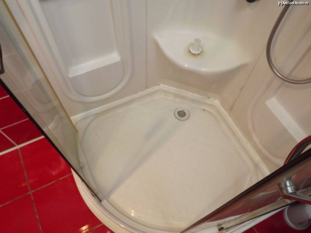 [P19] Heaven Hotel (Hunedoara) - a doua cameră primită; baia (observați atent cum arată cabina de duș, în special ușa din dreapta și peretele lateral)