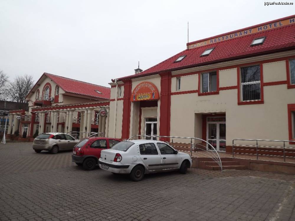 [P06] Heaven Hotel (Hunedoara) - vedere exterioară, parcarea și intrarea la restaurant (și recepție)