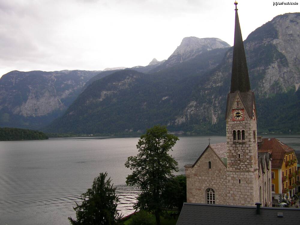 [P07] Biserica emblematica din Hallstatt, vedere spre lac.