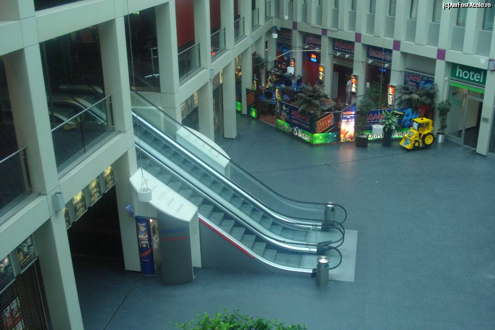 [P12] Vedere din camera noastra asupra curtii interioare a malului, cu scarile rulante ce duc la cinema
