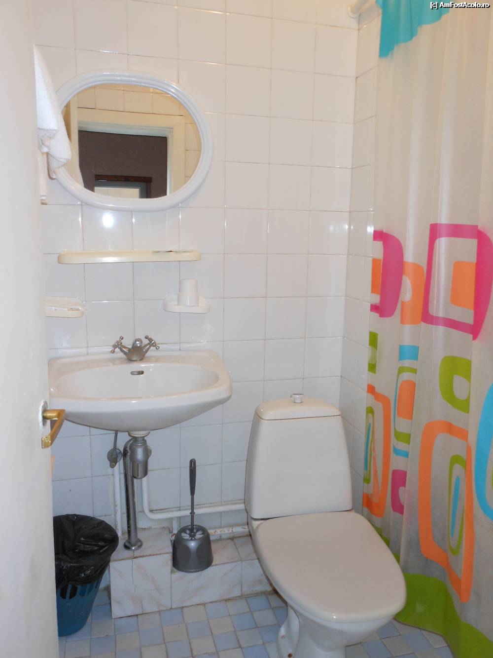 [P10] Hotel Kurortniy - Odesa. Baia cu dotarile ei, o incapere foarte mica. Dincolo de perdeluta se afla dusul.