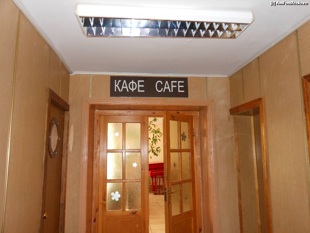 [P14] Hotel Kurortniy - Odesa. Intrarea la CAFE. In stanga, cu usi cu geamuri tip hublou, salile pescaresti, iar in dreapta toaletele.