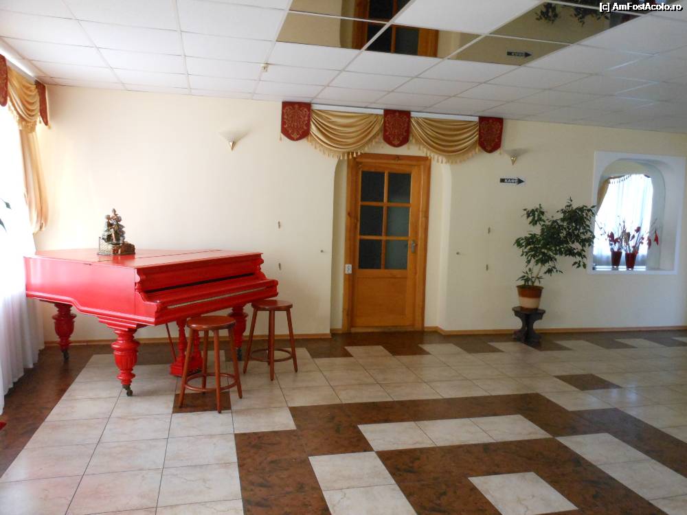 [P15] Hotel Kurortniy - Odesa. Anticamera restaurantului, pian, draperii si plante decorative.