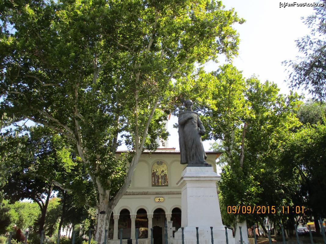 [P04] Vedere dinspre bulevard a bisericii Sf. Gheorghe Nou si a statuii lui Brancoveanu.