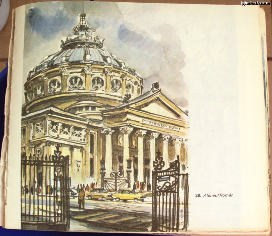 [P17] Ateneul Romăn, la a cărui cupolă a lucrat şi meşterul Alexandru Dimitriu. Acuarelă de Gh. Leahu din albumul "Bucureşti - arhitectură şi culoare".