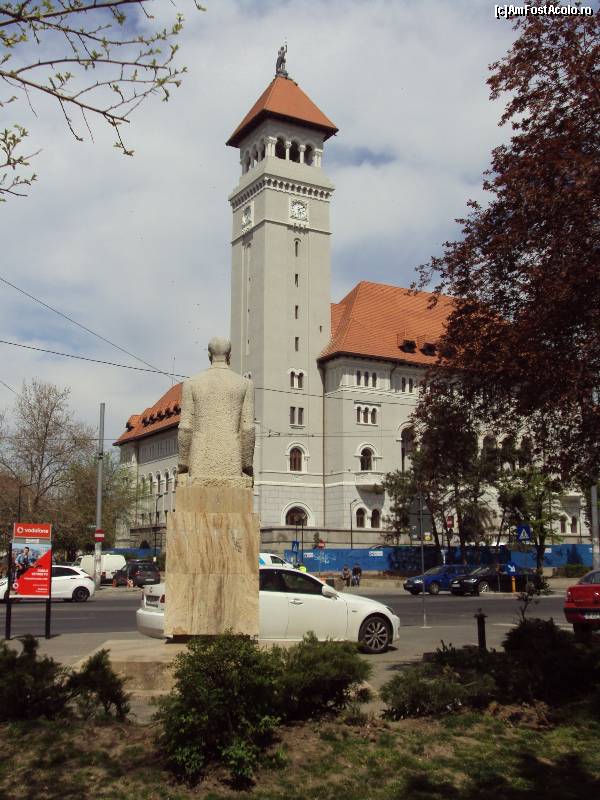 [P04] Titulescu (bustul) şi "Pandelică" stau faţă în faţă la intrarea pe Bd. Banu Manta