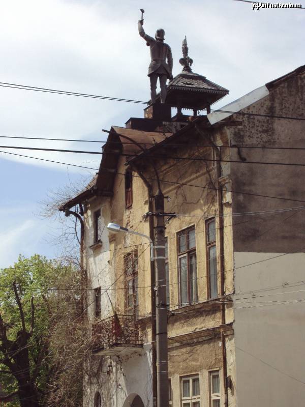 [P09] Iată-l: "omul de aramă" de pe acoperişul casei aflată la nr. 29 pe Strada Episcopul Radu