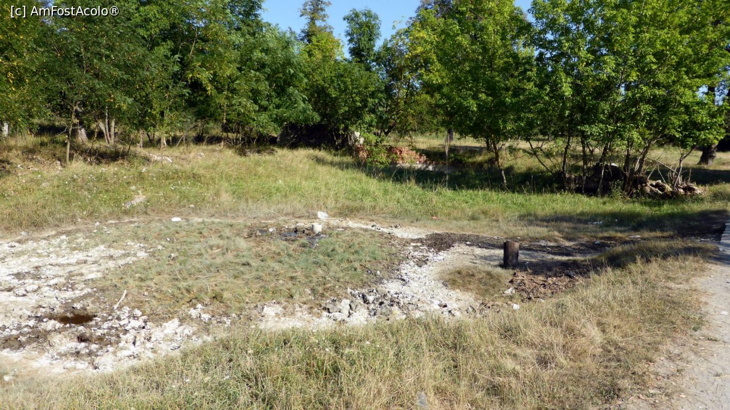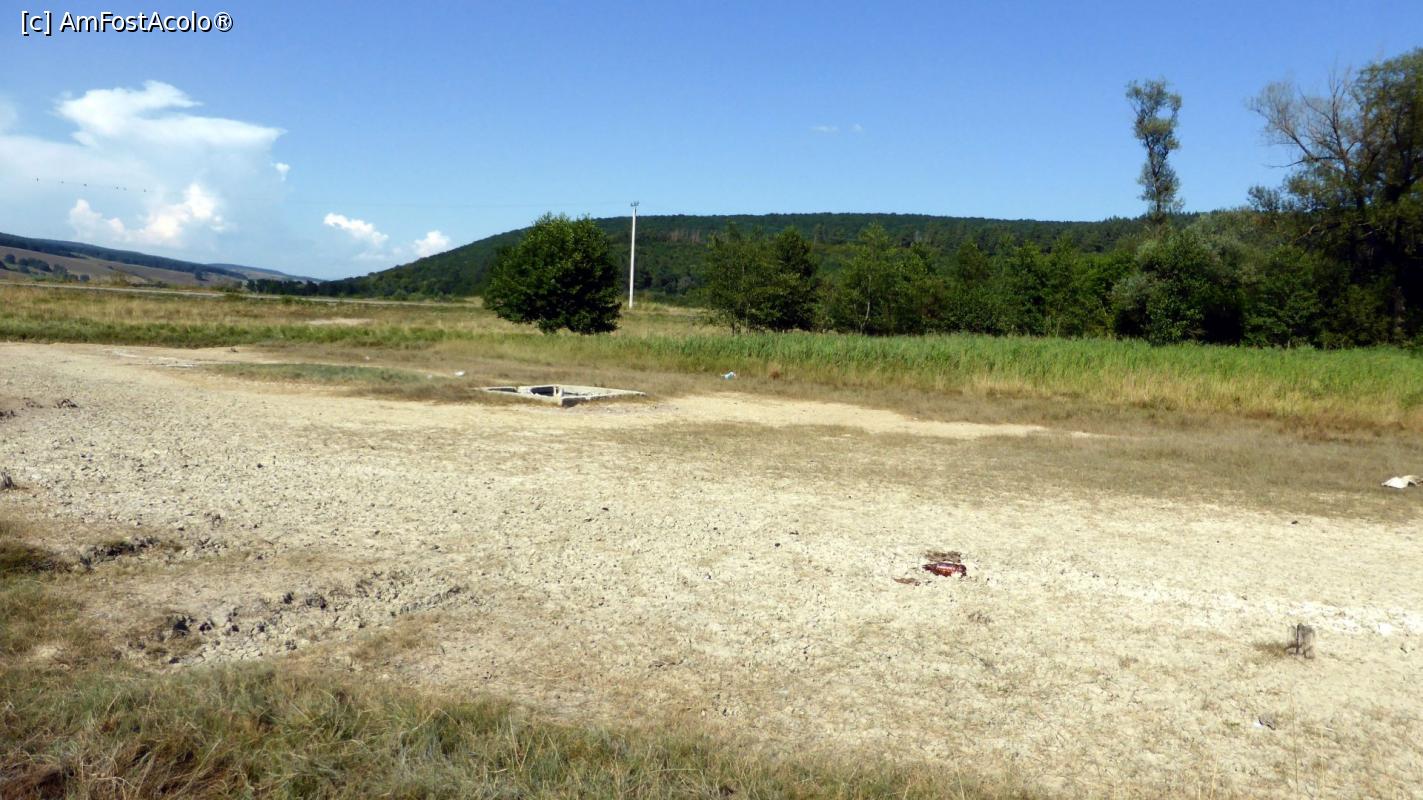[P12] Aceeași sărătură din poza precedentă, în spate cu alte sărături mai uscate. Înspre dreapta se vede burlanul de plastic a ceea ce mi se pare mie a fi un foraj piezometric de mică adâncime.