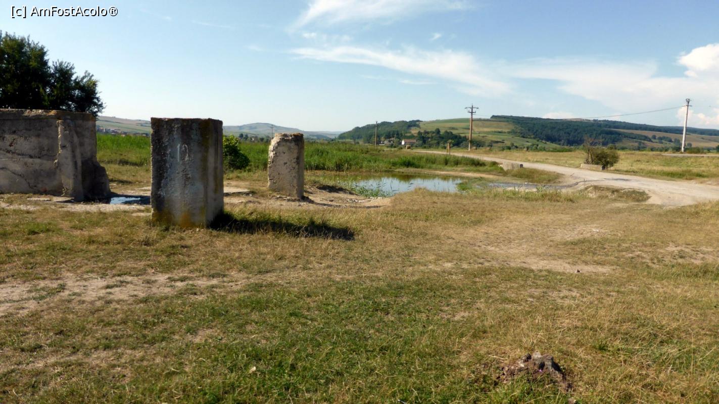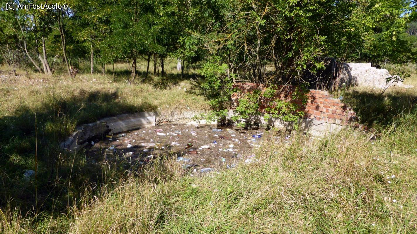 [P16] Bazinul circular văzut inițial, cu ziduri în ruină, rămășițe ale fostelor vestite cândva, Băi Homorod (Bv)