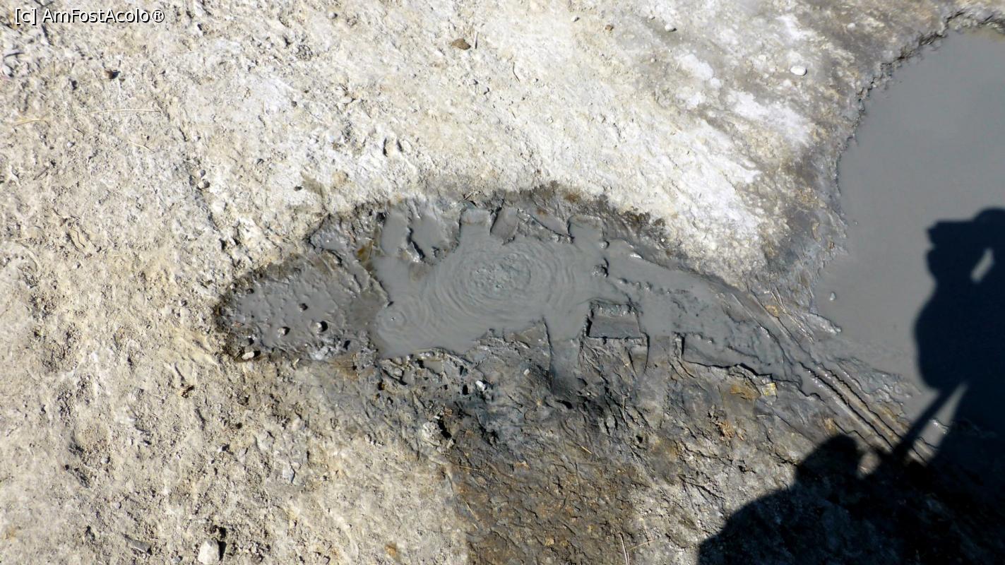 [P08] Emanații destul de active de gaze și noroi într-o baltă situată în mijlocul drumului (aceeași dintr-o fotografie anterioară, dar am schimbat poziția de fotografiere)
